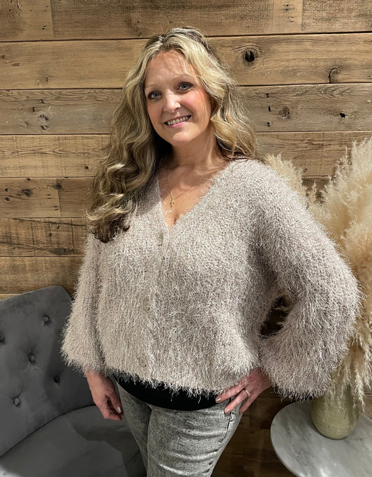 Oversized Fuzzy Balloon Sleeve Cardigan