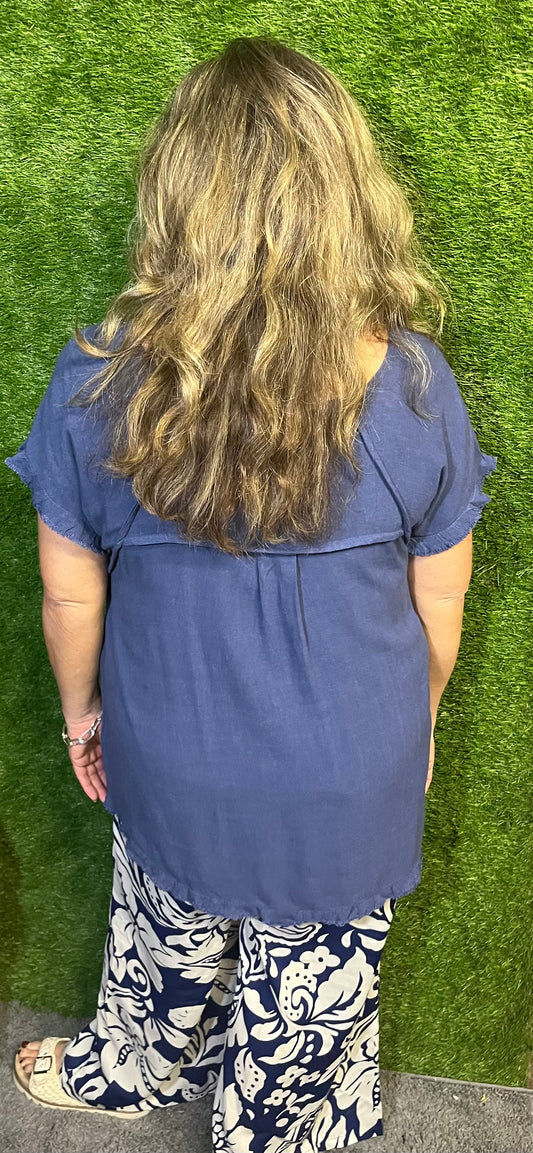 Denim Blue Linen Blend Top