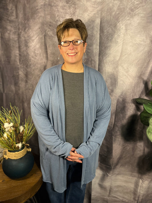 Denim Vintage Ribbed Cardigan