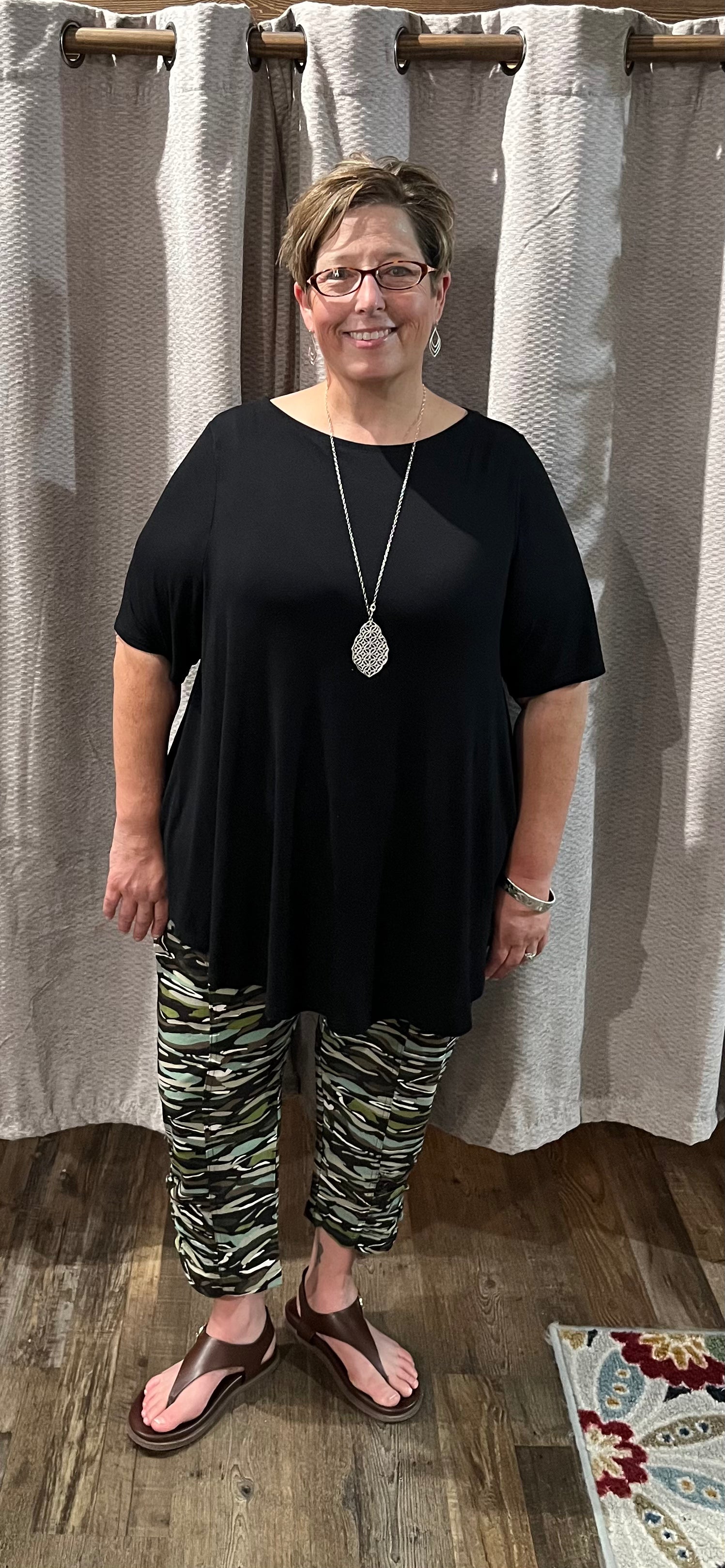 These Camo Bark Techno Crop Capris feature a comfy elastic waistband with button and zipper closure, plus ruched detailing at the bottom for a fun crop or capri fit. Lightweight and perfect for pockets, they’re your go-to for transitioning stylishly from summer into fall. With a 23-inch inseam and 12-inch rise, they blend comfort and trend effortlessly.