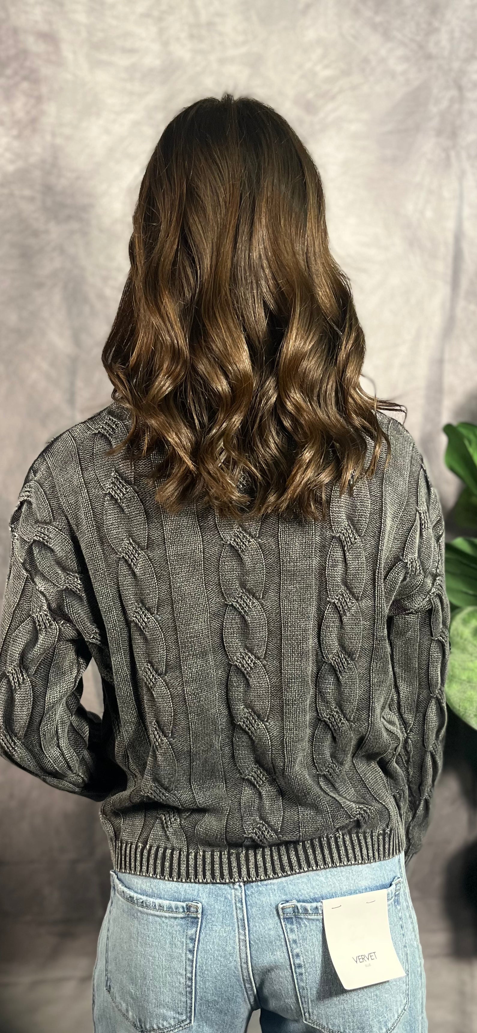 Cozy meets cute in this Charcoal Cable Knit Sweater Top! Crafted from a super soft, mineral-washed blend, it feels like a gentle hug—without any itchy distractions. The woven knit detail adds charming texture, making it perfect for layering or rocking on its own. Stay comfy, stay stylish!