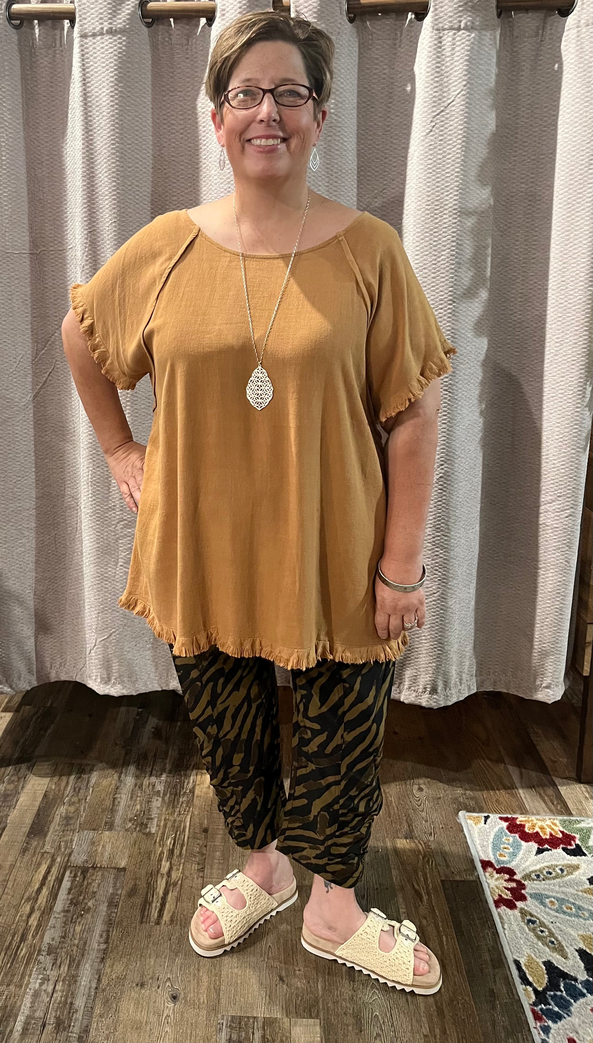 Stay cool and stylish all summer long with the Toffee Linen Blend Top PLUS. Crafted from a breezy linen-cotton blend, this best-seller offers unbeatable comfort and effortless charm. Perfect for sunny days, it’s your go-to staple for easy, playful looks that keep you feeling fresh and fabulous. Christie is wearing a size 1XL along with a size XL in our Dark Tiger