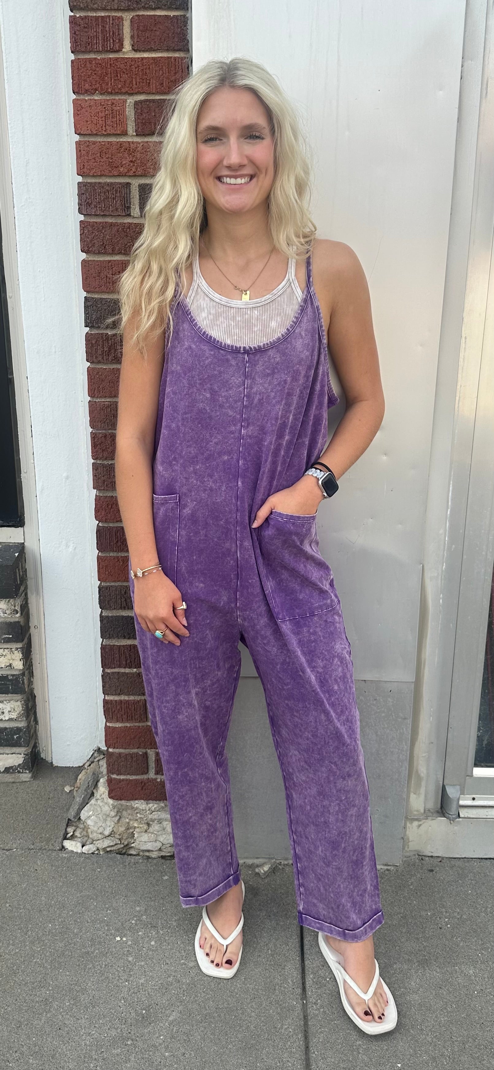The Violet Pocket Jumpsuit is a best-seller designed for all your summer fun and fall cozy vibes. Its comfy fit and cute pockets make it perfect for sunny days or layering when the leaves start to fall. Easy to wear and hard to forget, this jumpsuit adds a playful pop to any wardrobe!
